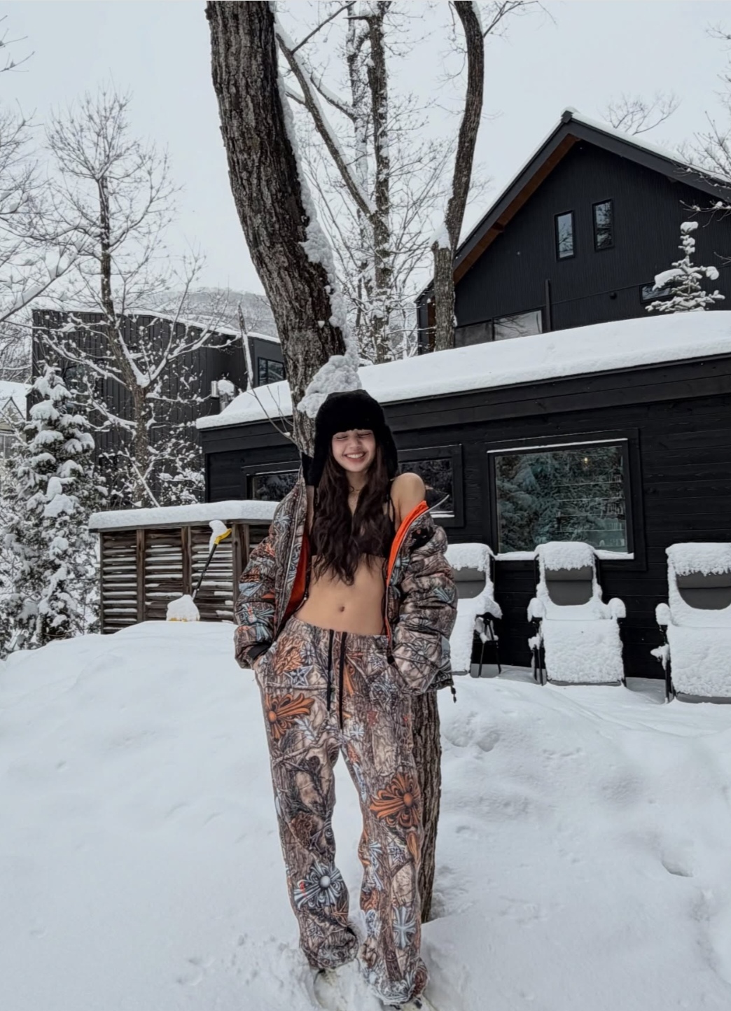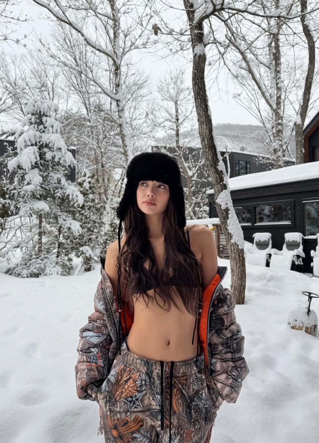 Ceea ce a atras cel mai mult atenția a fost alegerea îndrăzneață a ținutei Lisei. În timp ce a împerecheat articole pentru cap de blană neagră groasă cu pantaloni căptușiți colorați, cu model, ea a optat pentru un top simplu de bikini negru, dezvăluind abdomenul tonifiat și linia subțire a umerilor în ciuda vremii reci. Amestecul neașteptat de echipament de iarnă și costume de baie i-a evidențiat simțul neînfricat la modă și carisma caracteristică.