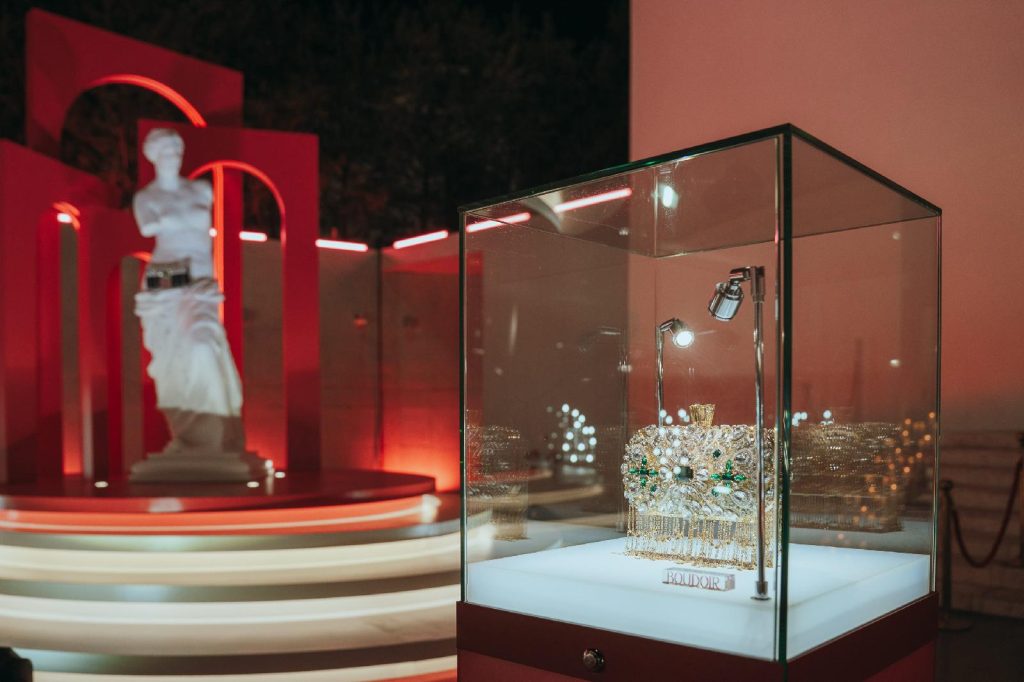 Fotografiile din timpul producțieei pun în evidență designul opulent al spațiului „Boudoir” și look-urile variate ale Sarahei Kim. De la pinul masiv amplasat în centrul magazinului până la zonele elegante de expunere a genților de lux, brandul atrage instant atenția.