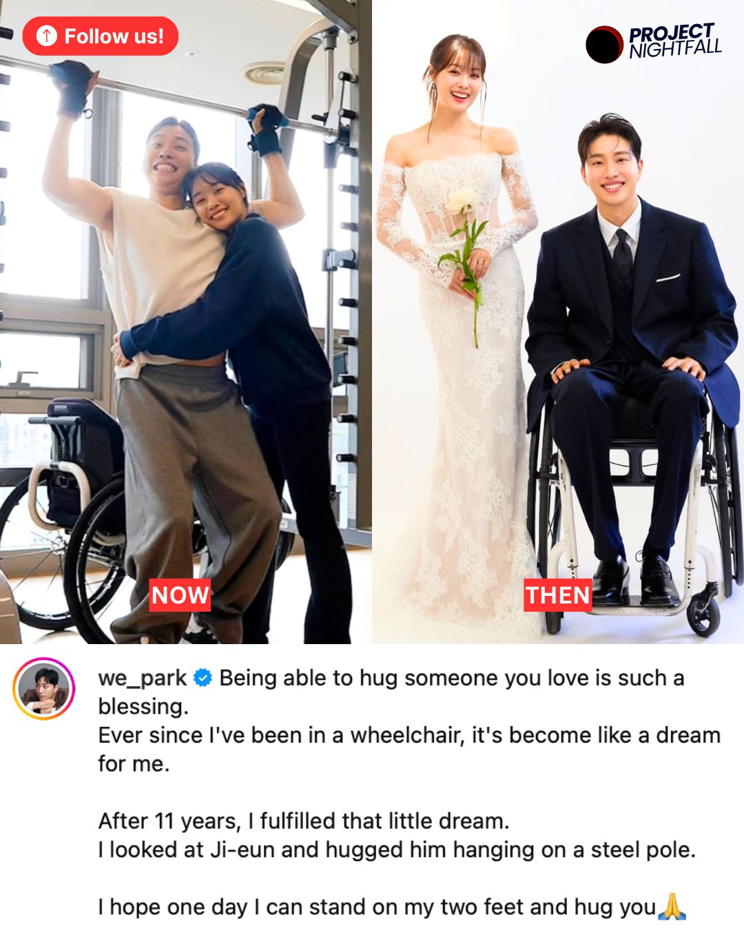 Cântăreața și, totodată, actrița Song Ji‑eun și YouTuberul paralizat Park We s-au cunoscut în 2022, la o întâlnire de rugăciune organizată într-o biserică din Coreea. Relația lor a atras rapid atenția publicului datorită modului în care Ji‑eun a vorbit deschis despre devotarea și respectul ei pentru Park We, care trăiește imobilizat într-un scaun cu rotile în urma unui accident suferit în 2014.